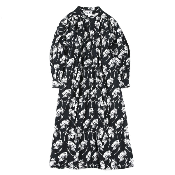 Bandad Painter Dress - Cotton Brushed Floral Print Black/White