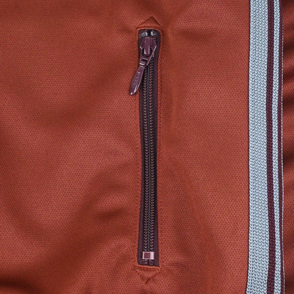 伸縮性や通気性に富んだポリエステルジャージー素材を使用した快適性に優れた一着は、光沢感のあるポリエステルジャージーに独特の配色や刺繍デザインなど、一般的なスポーツウェアとは一線を画した華やかなNEEDLES定番のアイテムです。