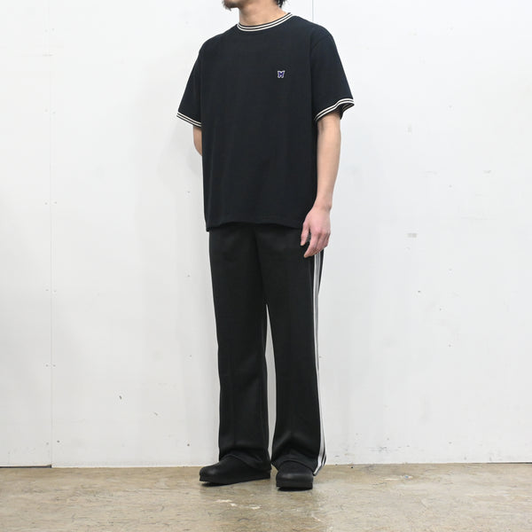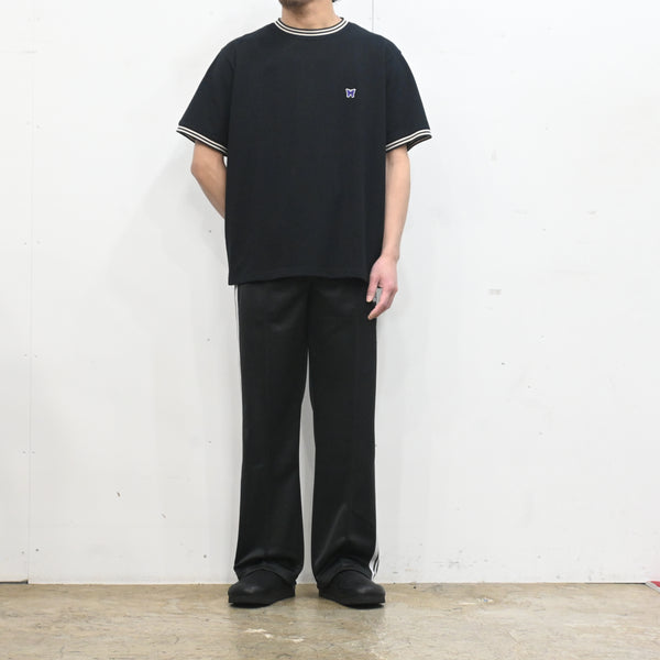 伸縮性や通気性に富んだポリエステルジャージー素材を使用した快適性に優れた一着は、光沢感のあるポリエステルジャージーに独特の配色や刺繍デザインなど、一般的なスポーツウェアとは一線を画した華やかな、NEEDLES定番のアイテムです。